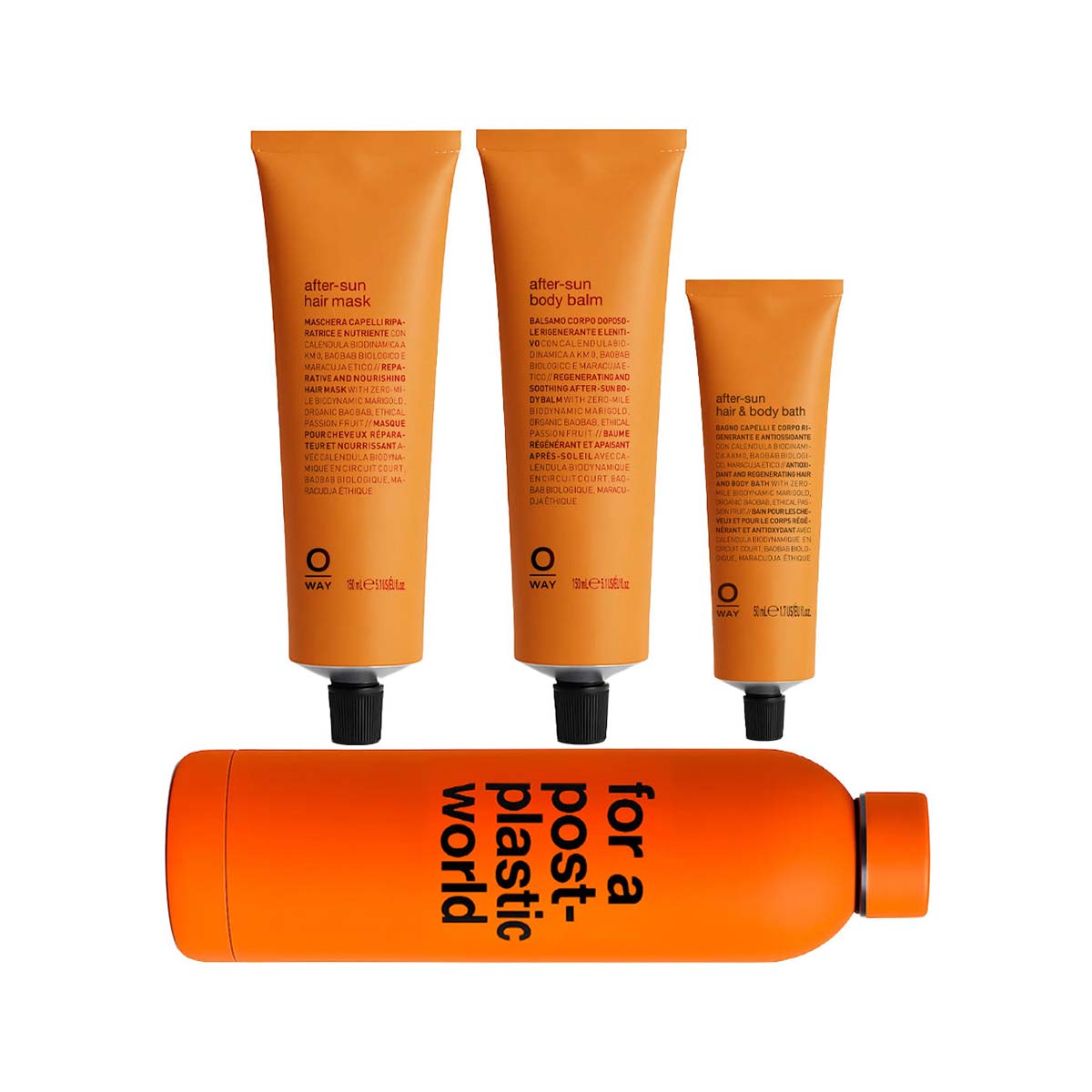 Embrace the restorative ritual of post-sun care with this thoughtfully curated collection that soothes, repairs, and revitalizes both hair and skin after sun exposure. This complete after-sun sanctuary combines Oway’s most effective Mediterranean botanicals with ethical sourcing, offering everything you need to restore balance and radiance.